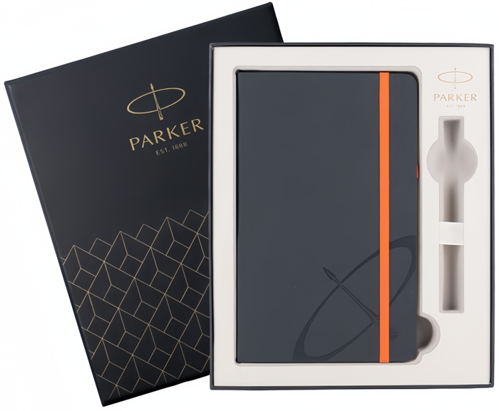 Подарочная коробка Parker с блокнотом от официального дилера Parker в Миассе. Вы можете дополнительно заказать гравировку, которая подчеркнет Вашу оригинальность и придаст памятность статусному подарку. Все ручки Паркер поставляются в фирменном футляре.